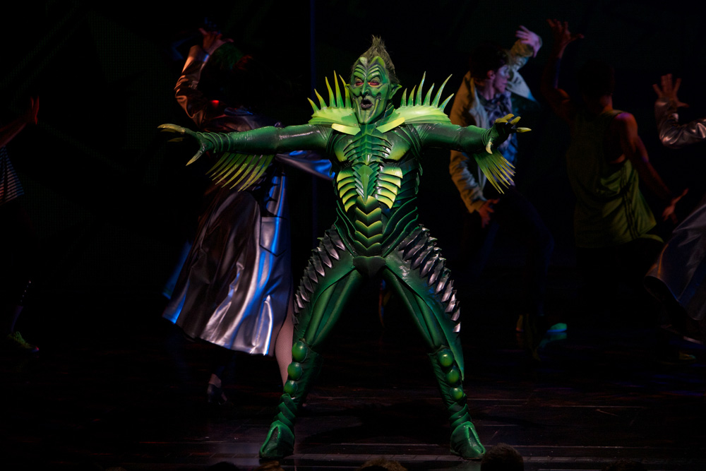 1985’s Re-Animator movie was a gory and campy translation of H.P. Lovecraft’s horror novel. The 2011 musical somehow matches that same level of tongue-in-cheek humor with bloody violence, following med student Herbert West in his gross-out path of finding a cure for death, via green serum. The abundance of blood let a splatter-zone for theaters, where the first three rows would be sprayed with red.