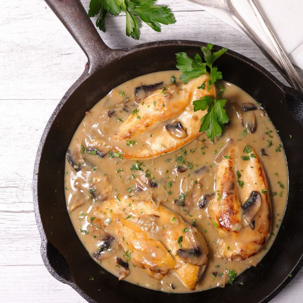 9. Transfer the chicken to a warm serving dish and add the morel sauce.
