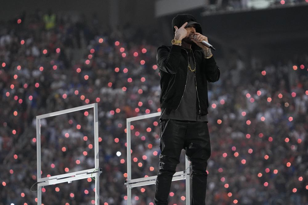 “We watched all elements of the show during multiple rehearsals this week and were aware that Eminem was going to do that,” league spokesman Brian McCarthy said.