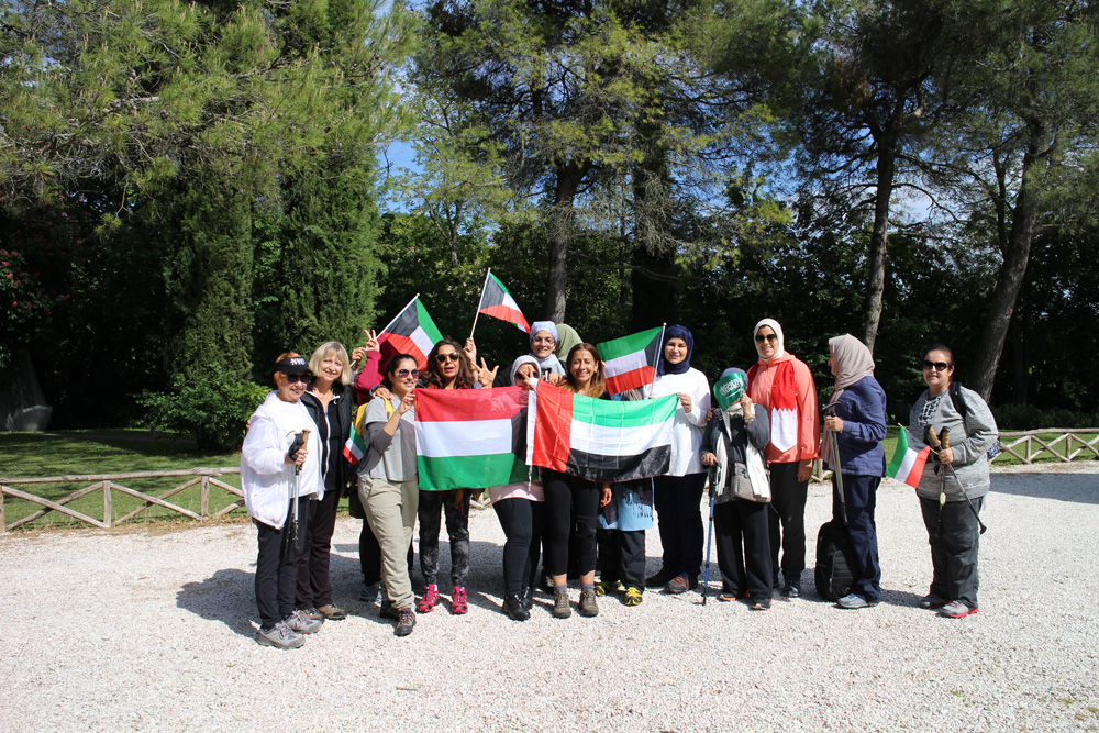 Hala walking with a group